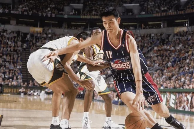 姚明2002年第1轮第1顺位被休斯顿火箭队选中,NBA生涯出战486场比赛,场均出战32.5分钟,得到19分9.2篮板1.6助攻0.4抢断1.9盖帽。