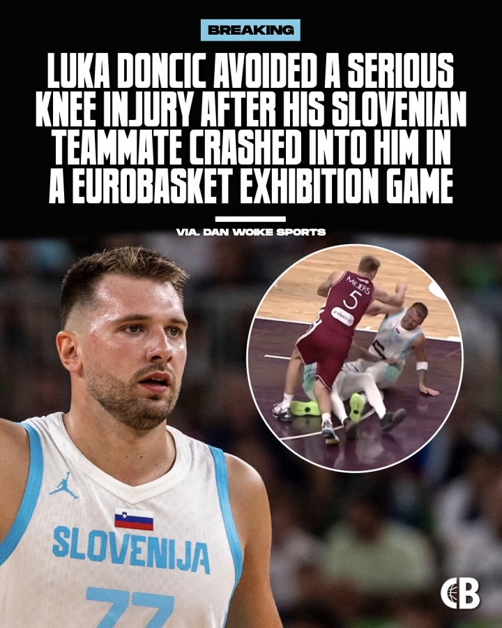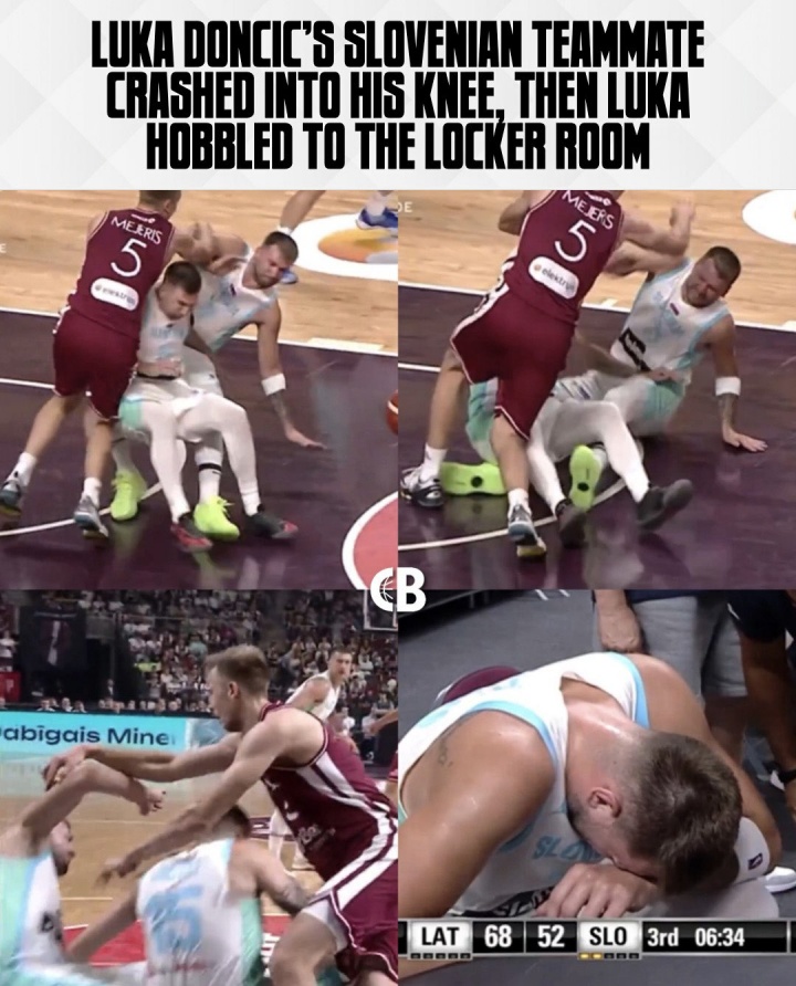 08月17日讯 欧锦赛男篮热身赛,斯洛文尼亚88-100不敌拉脱维亚,东契奇被队友撞翻在地。